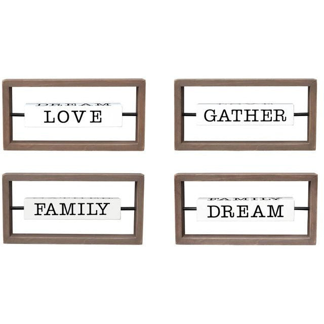 Four-Sided Rotating Wood Tabletop Sign -- Love - Gather - Family - Dream