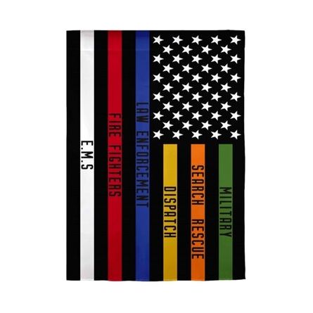 Everyone can show all passersby's that they care about those who serve our country with this Responders Thin Line Garden Suede Flag. Services are embroidered into the vibrant colored stripes. Use with standard-sized poles & display support with pride.