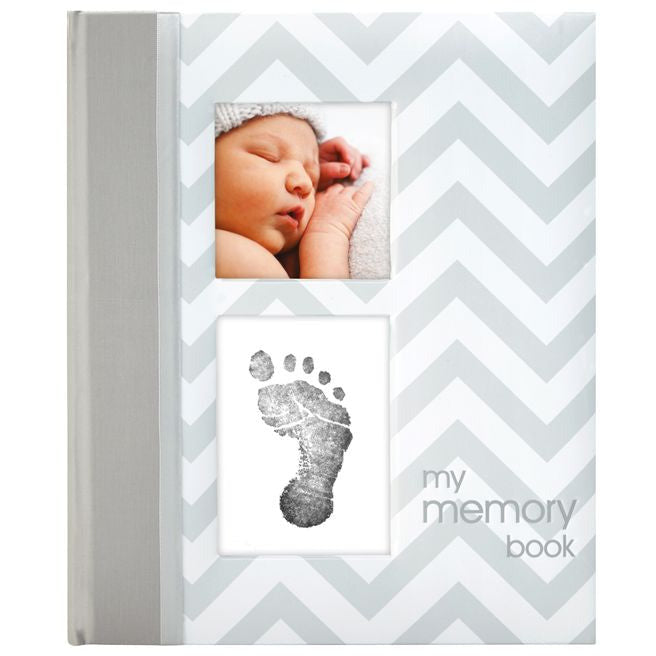 The Gray Chevron Baby Book and Clean-Touch Ink Pad Kit allows for the preservation of precious baby details, such as hand and footprints, to be stored in a treasured keepsake. Ensure the timelessness of your beloved baby's adorableness with this delightful package.