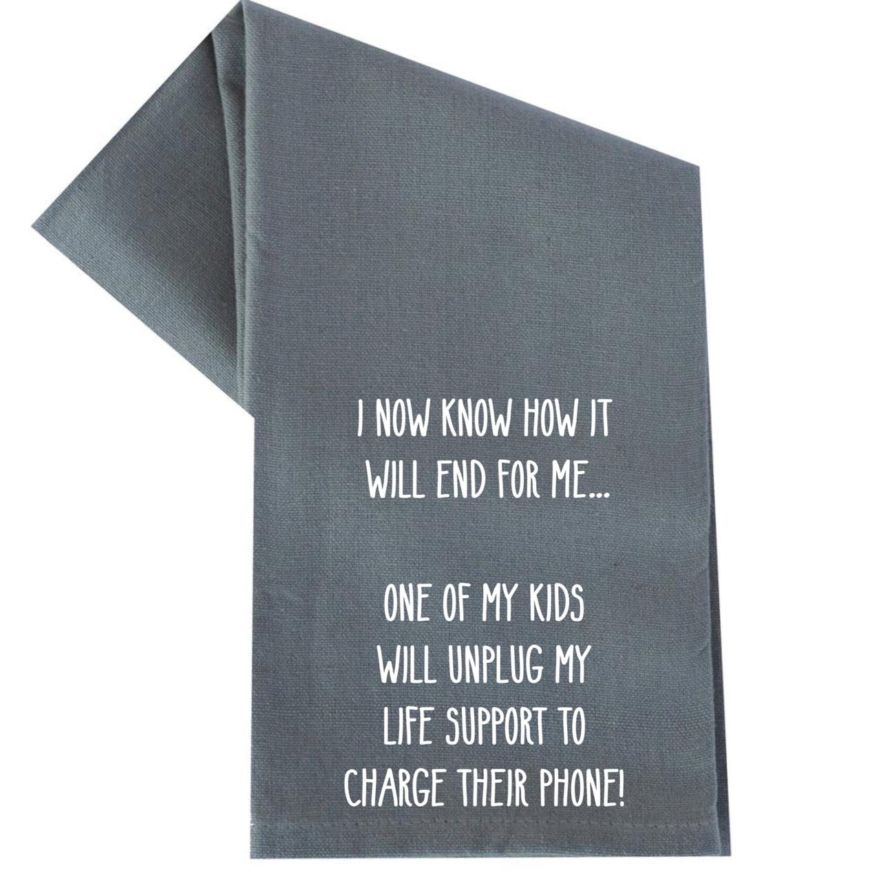 If you are looking to add a touch of humor to your kitchen, these high quality, screen-printed tea towels are just what you need! 100% Cotton. These gray tea towels are 100% cotton and measure 27" x 27".