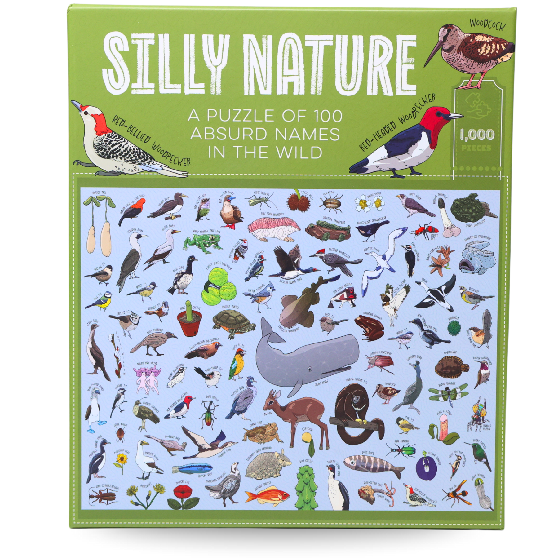 Puzzle Description: Silly Nature Puzzle: A Puzzle of 100 Absurd Names in the Wild Introducing the Silly Nature Puzzle — a 1,000-piece challenge celebrating the most hilariously named species in the wild. From the boldly named penis cactus to the boops boops, this puzzle is a tribute to nature's greatest hits. Whether you're a nature nerd, biologist, or someone who just appreciates a good puzzle,  Silly Nature will have you laughing and learning at the same time.