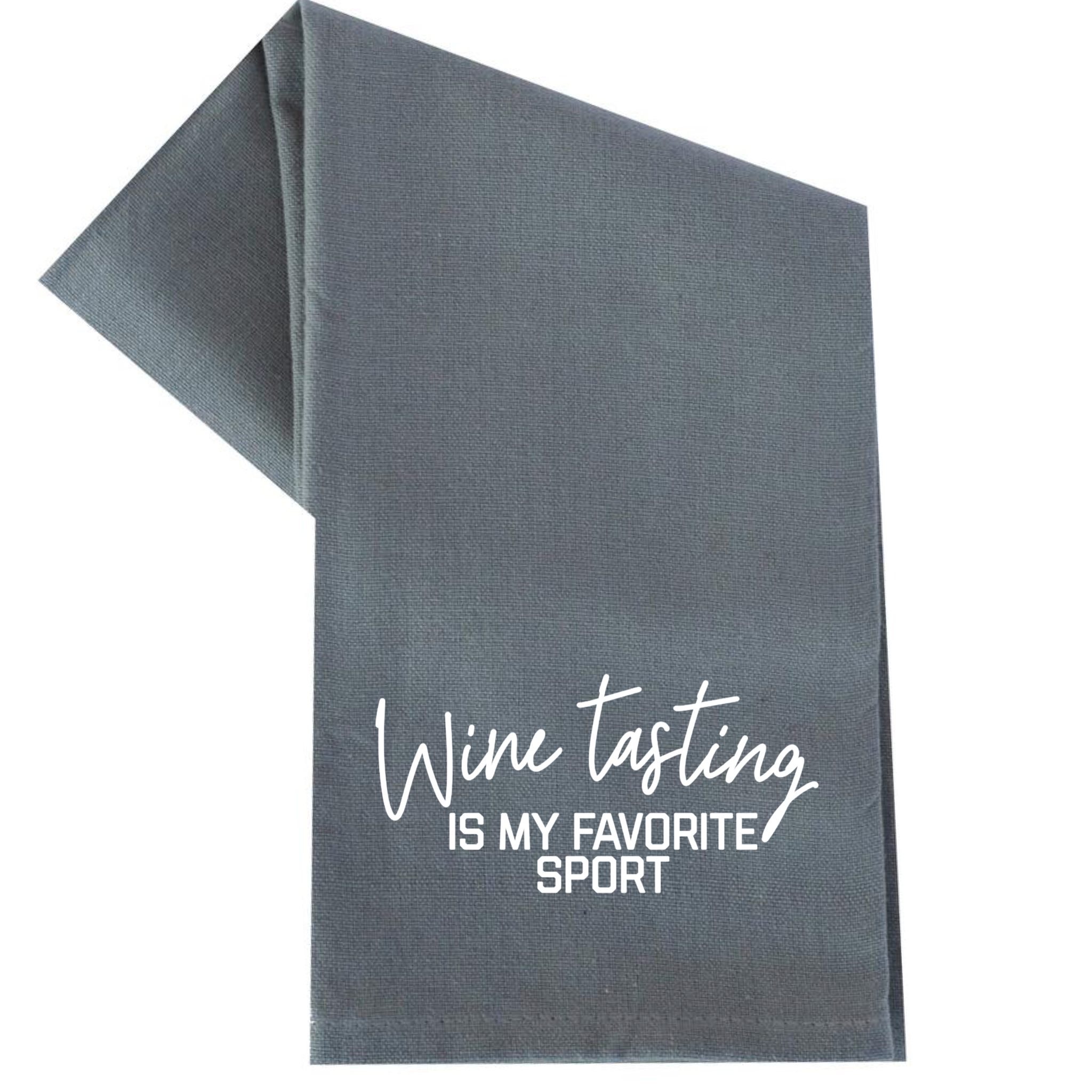 WINE TASTING IS MY FAVORITE SPORT TEA TOWEL