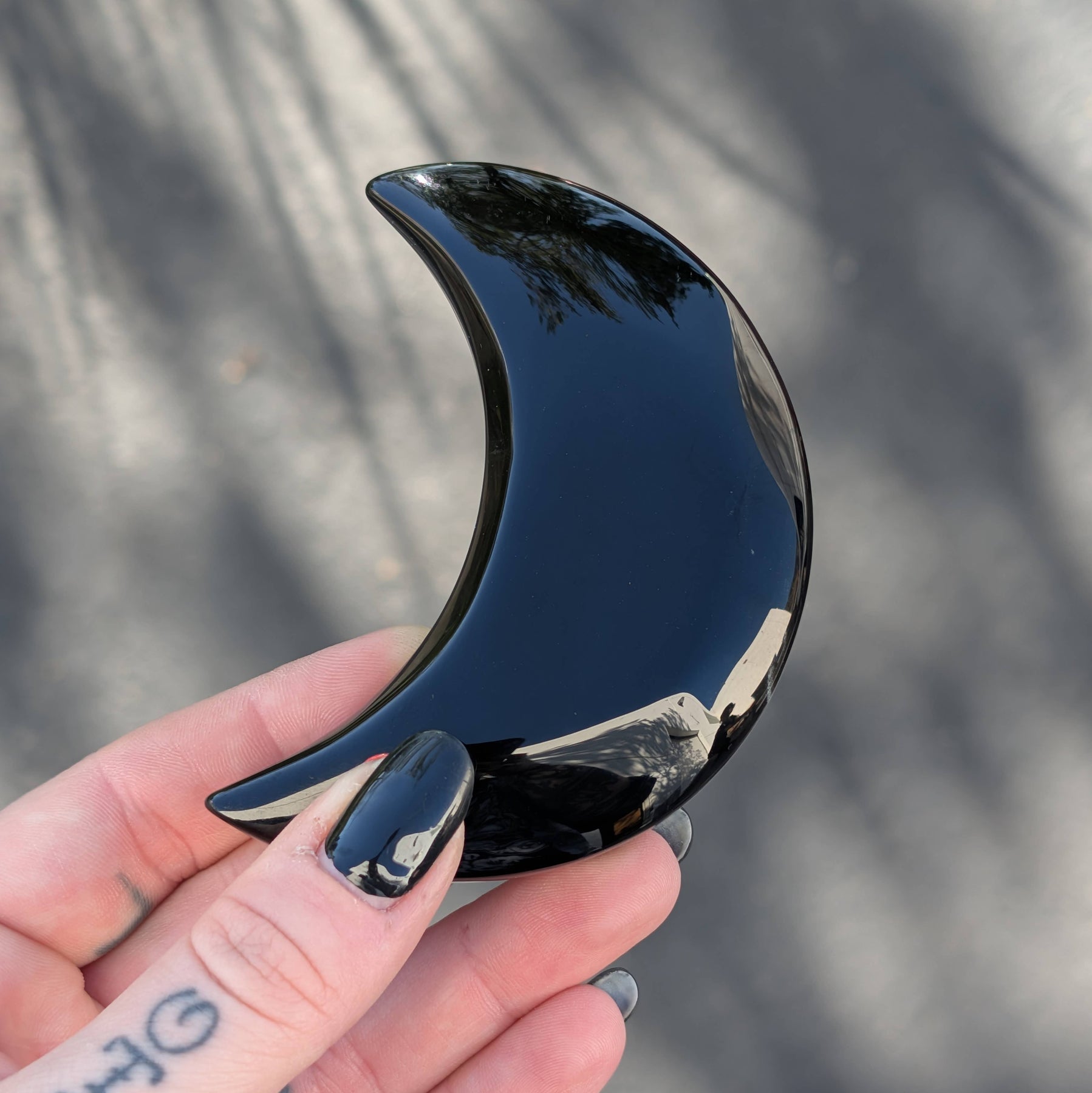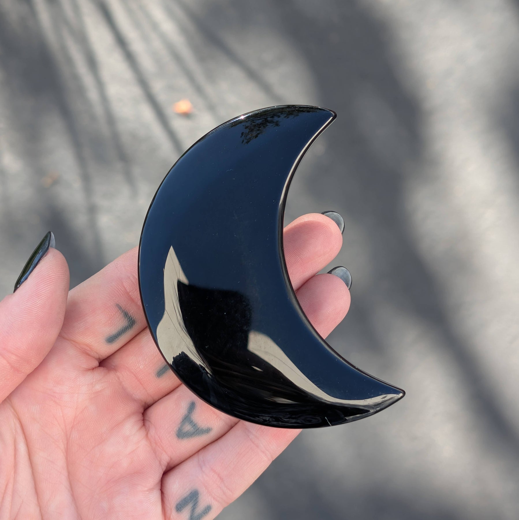 Embrace the darkness with these medium sized moons. Sides are slightly rounded and each measures roughly 3.7-4 inches.