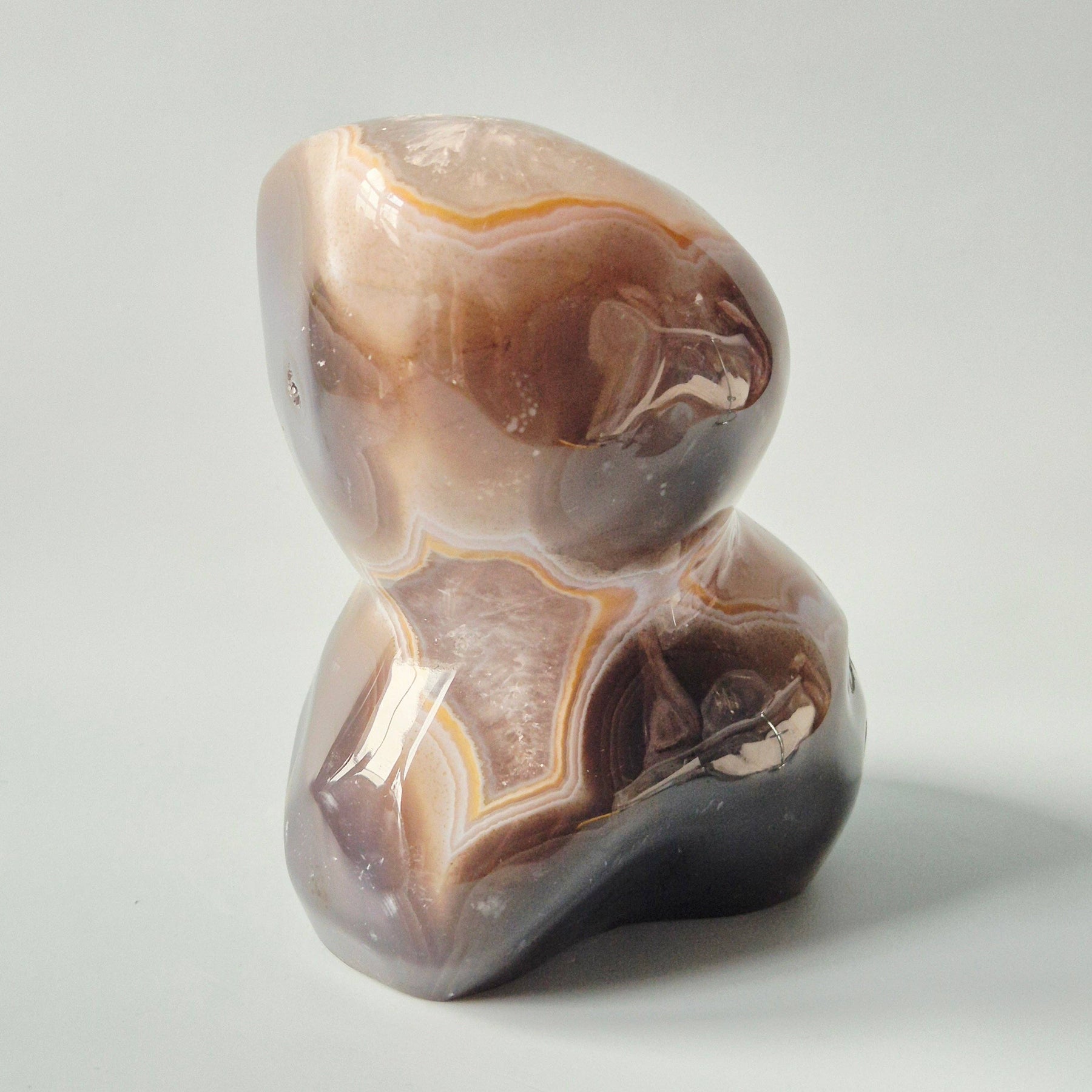 This impressive Druzy Agate Freeform with Quartz is a powerful and luxurious natural piece with rich band structures and a sparkling crystal core.