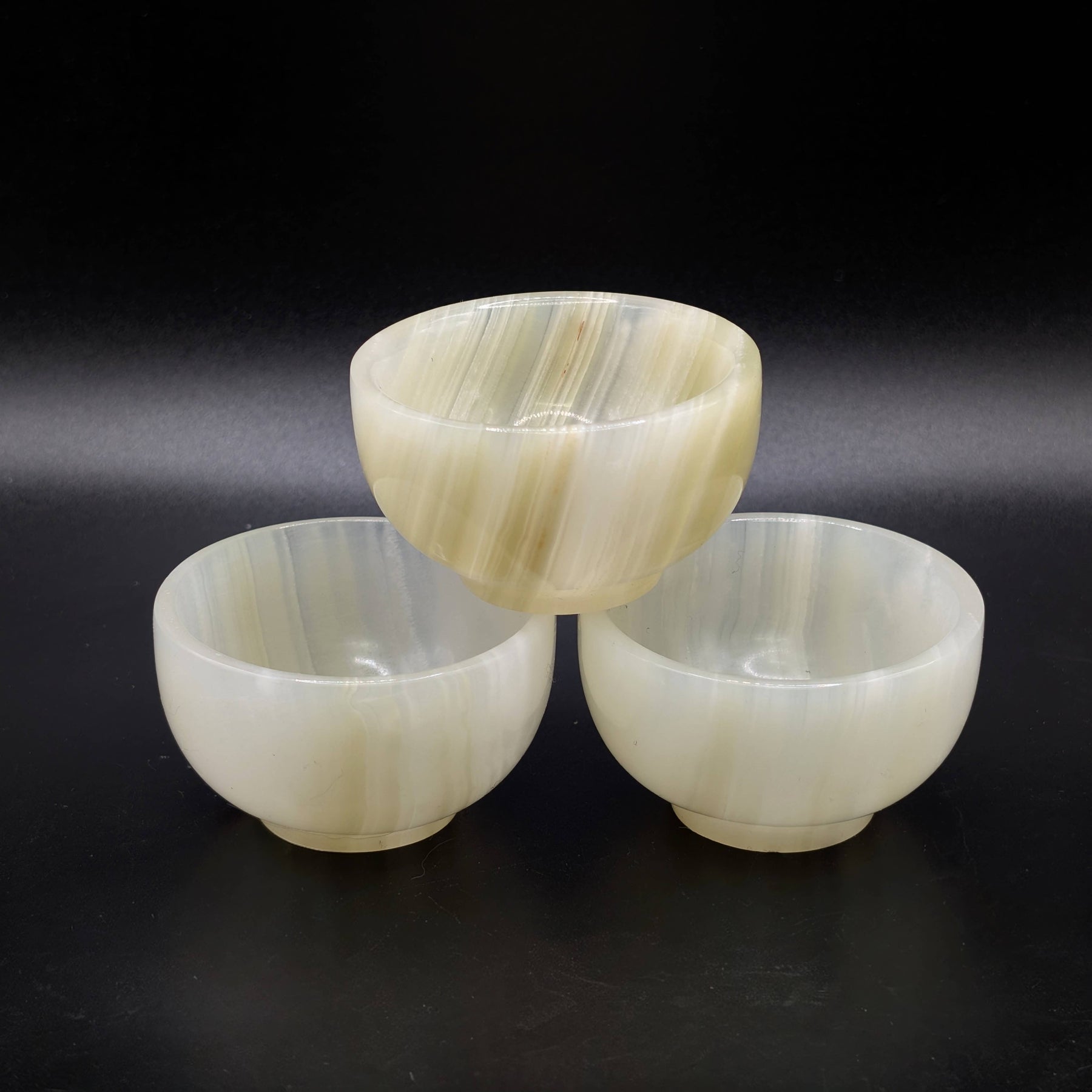 This green onyx tea cup blends function and beauty in a striking stone form. Carved from translucent green onyx, each cup showcases soft banding and luminous depth, making it a standout piece for tea rituals, display shelves, or intention-focused collections.