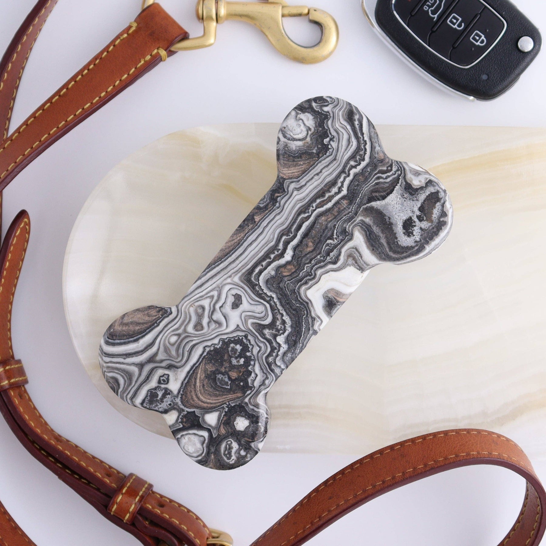 You will receive 1 Zebra Onyx Bone approximately the same size and quality as the ones pictured. Note that patterns, colors, and shades may vary. (All props shown in the photo are not included, they are only present for display purposes only. You will only receive 1 Onyx Bone)
