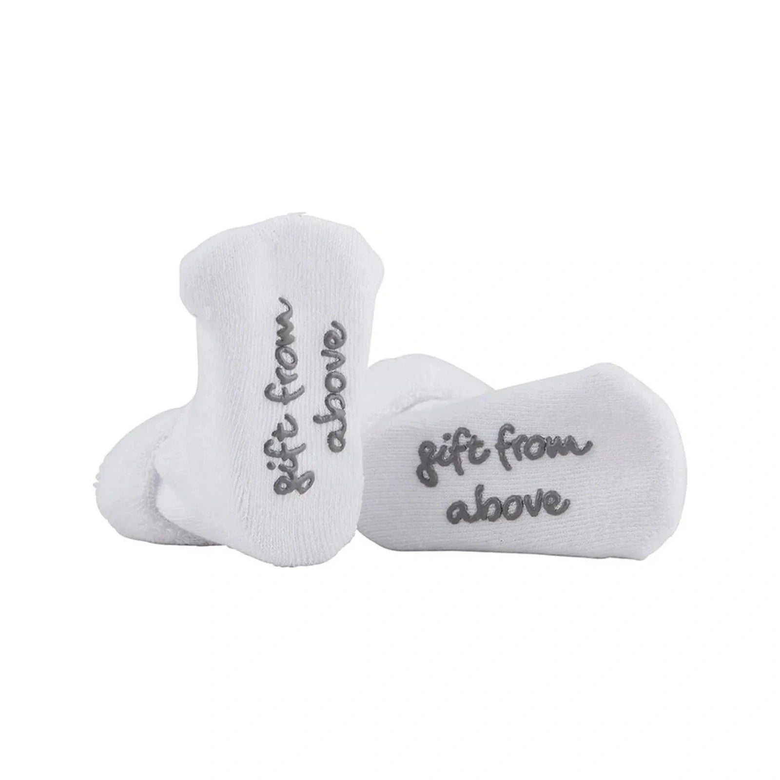 These darling non-slip socks feature a soft cotton outside and French terry inside.