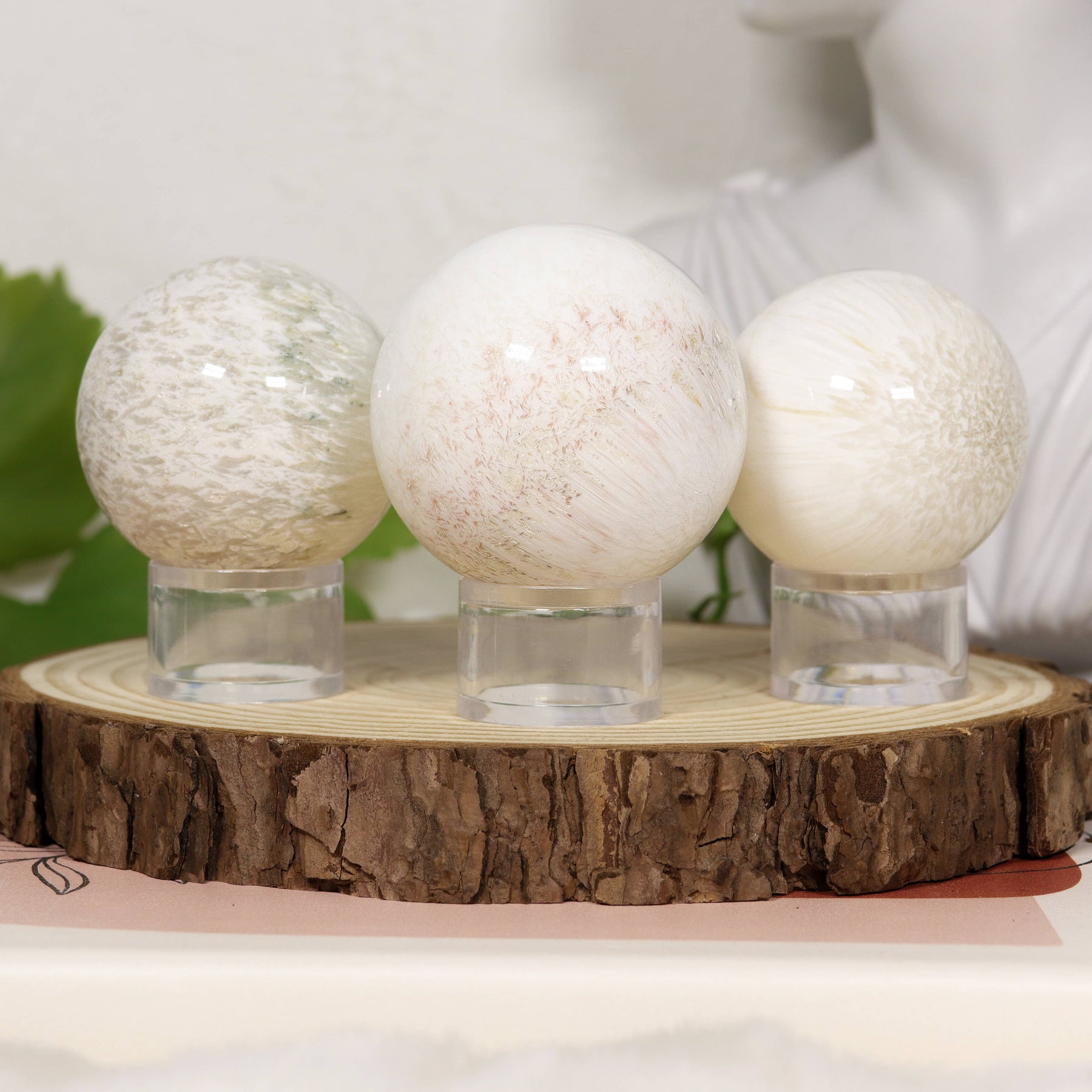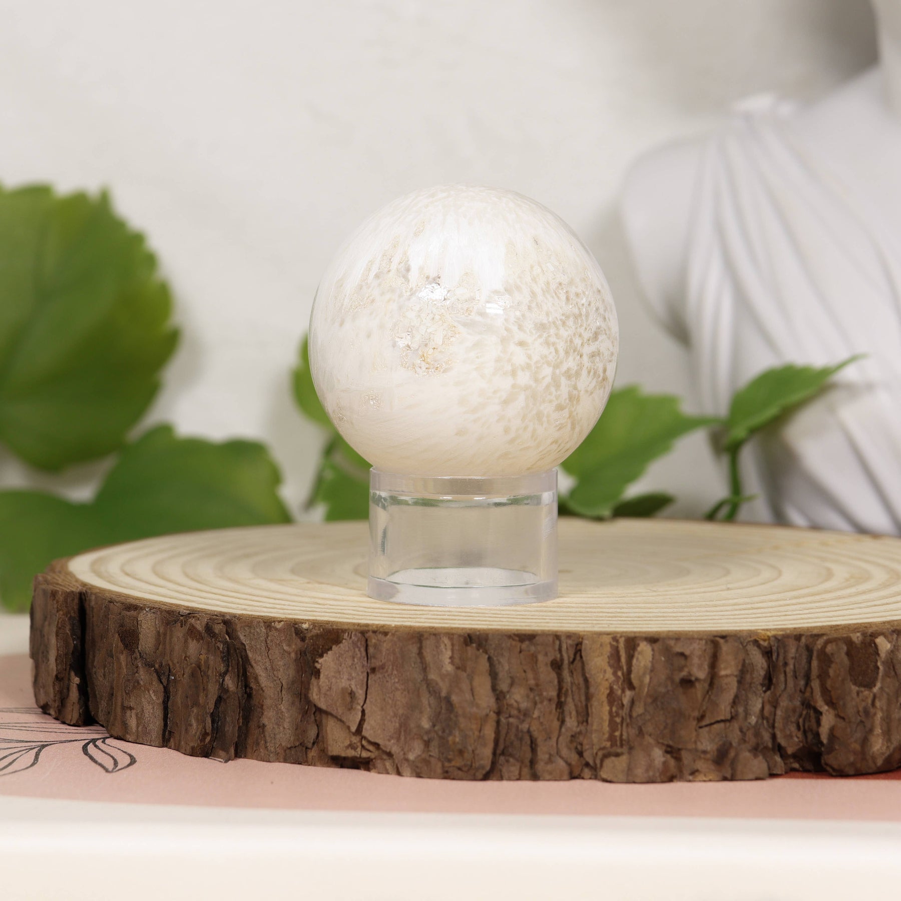 The Scolecite, known as Light worker's stone, has powerful vibrations. The Scolecite Spheres are a great tool for an energy healer, reiki master or caregiver of any kind. In the shape of a Sphere, Scolecite radiates peaceful energies in all four directions that help in keeping a clear channel with the Divine to enhance meditations, achieve inner peace and relaxation, bring clarity of mind, promote restful sleep, and empower sweeter dreams. A beautiful piece that can be used artistically to complement decor in any space.